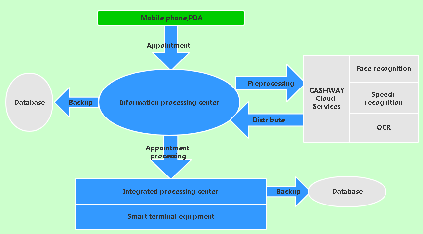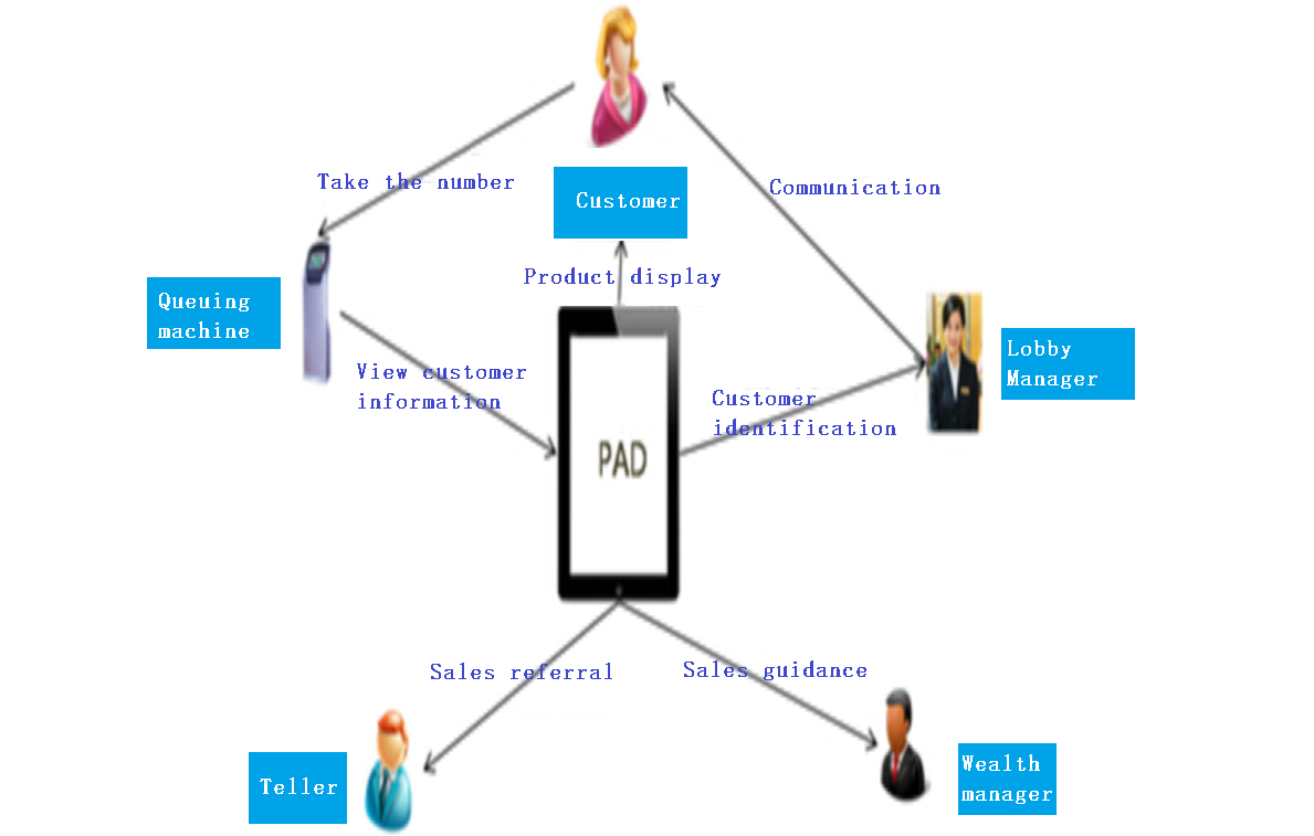 Users communicate with the information processing center through mobile phones and PDA to obtain the information of bank outlets and queues. Select relevant services for face appointment and business information pre-filling. More Details